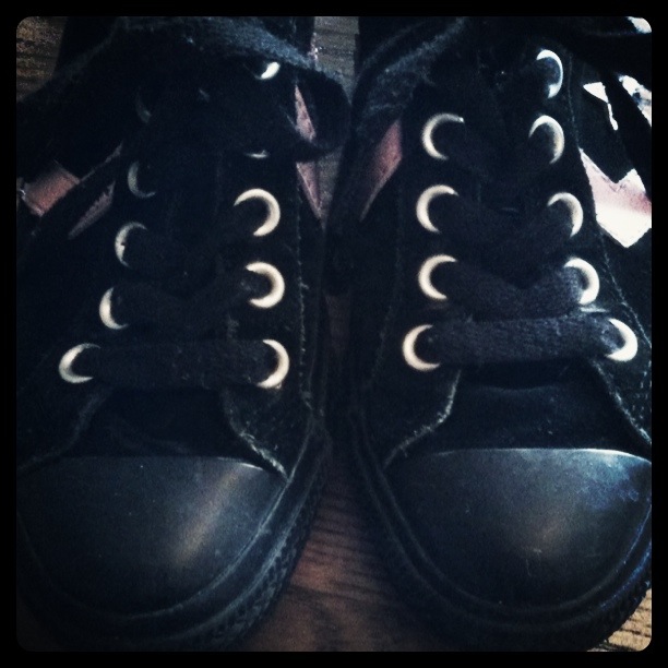 Exercise is not at all the activity I am thinking of though. I got off track a little. I think it's fine for people to wear sneakers. Viva la fitness shoe. Especially kids. Awesome great! Keep those feet healthy and comfy. And they do great things with sneakers now. I love it. Have you seen those knee high Converse? Be still my heart. Really! There seems to be a sneaker for everyone. I'm a little sad that I can no longer find the awesome sneaks I wore in my teens. I think they were called Side One or something like that. They were black leather and rubber with an over-sized tongue that folded over the laces. Other than those I was a Converse girl all the way.