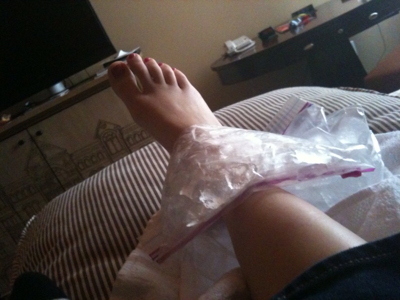 Oh... you can't see that? Well neither can I because I have to keep ice on it because I'm trying to keep the swelling down and the terrible horrible pain at bay.