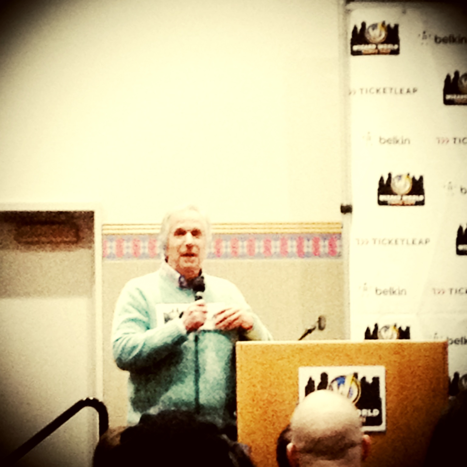 After our initial wander around the place to get the lay of the land and a read through the schedule to make sure we could make it to our photo ops (yes... we did) and a couple of must do panels we wandered over to a Q&A session with the one and only Arthur Fonzarelli. Yes, the Fonz. And yes I know his real name. And yes I know the impressive list of credits he has built up over the years as a writer, director, producer, and children's author. I didn't know he'd written a book on Fly Fishing but other than that I was well aware that Henry Winkler had made an amazing career for himself out of his leather jacket. What I didn't realize was that the man is a philosopher. Sitting through the 45 minute session he delivered so much inspiration and so many pearls of wisdom that we walked out of his session feeling like we'd been to a particularly effective intensive self help session.