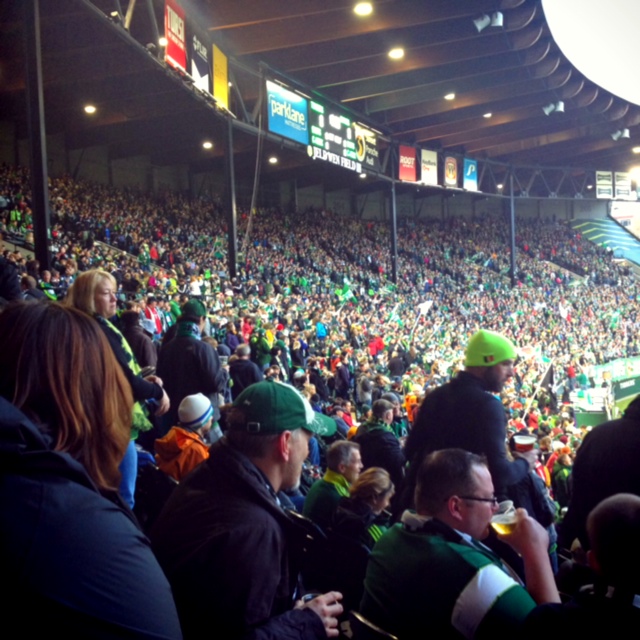 My dad's birthday is coming up - less than a month away. As it's his first birthday in Portland, and the first birthday on which I'll have the chance to see him in more than 15 years, I wanted to do something special. I'd been racking my brain trying to come up with it and Sunday night peering down at the field from the stands I realized the perfect gift. Better than perfect! Right! I'd take my dad to a Portland Timbers game! It was brilliant. I patted myself on the back, emailed my mom to make sure she wouldn't want to go too, and checked the schedule for the right game. I had it all figured out.